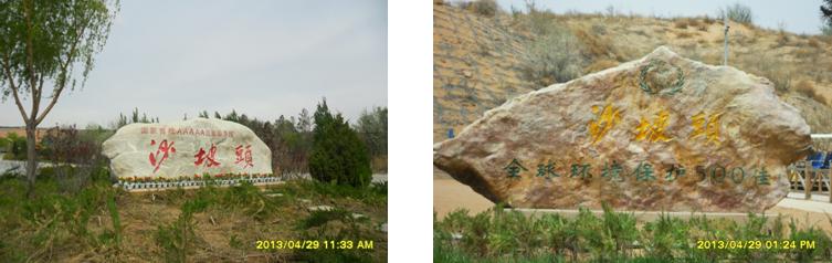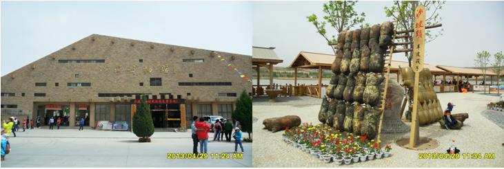 我們在沙坡頭旅游黃河區(qū)(南區(qū))買了門票,隨著人流,進入景區(qū)。景區(qū)主大門是一個四四方方的立柱,加上“井”字形建筑造型構(gòu)成,立柱頂部呈長城烽火臺垛口造型,立柱右側(cè)上部有三個鎏金大字“沙坡頭”。 在景區(qū)大門東側(cè),是沙漠博物館,它的頂部呈金字形造型,游客可以免費進去參觀。